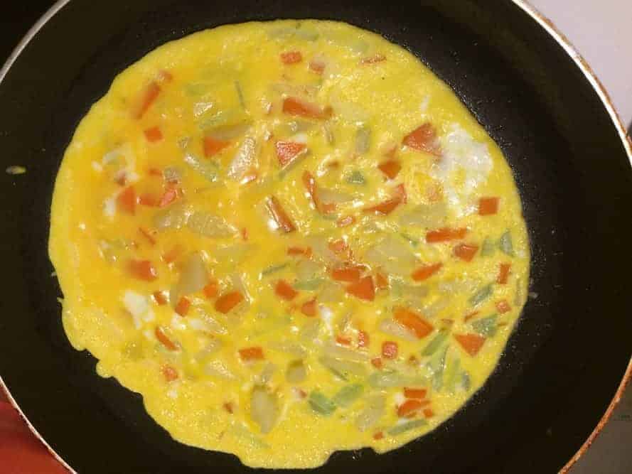 - Sau khoảng 10 phút món trứng rán rau củ đã sẵn sàng.